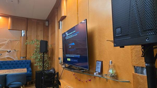 Установленная система по сути представляет собой профессиональное караоке для дома, но и для коммерческого использования подходит отлично: системой может управлять сотрудник заведения, используя для этого планшет с установленным на него приложением EvoControl. Ну а если формат мероприятия предполагает, что выбирать нужные песни будут сами гости заведения, то они могут управлять системой с помощью штатного, полностью русифицированного Bluetooth-пульта, органы управления которого просты в освоении и понятны каждому даже без инструкции. Встроенной базы фонограмм хватит для удовлетворения любых музыкальных предпочтений: на момент продажи она составляет более 49500 треков в студийном качестве.