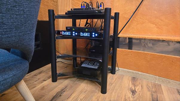 Распределение и настройка звучания источников звука возложена на микшерный пульт MACKIE ProFX10v3+. Это аналоговый микшер с цифровым блоком эффектов и расширенным функционалом их маршрутизации. Пульт имеет четыре микрофонных/инструментальных входа, две независимые стереопары для подключения стереоисточников и отдельный канал для линейного иди Bluetooth-подключения. Модель была выбрана по причине необходимости одновременного использования четырех микрофонов и независимой обработки и настройки каждого из них.