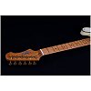 Гриф и накладка на гриф выполнены из печеного клена (roasted maple). При такой обработке поры дерева максимально сжимаются и в процессе использования вода уже не будет выходить, ваша накладка не сожмется и лады не повылазят вне зависимости от влажности и смены температуры. Плюс такое дерево выглядит очень красиво.