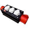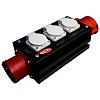 Осуществляет коммутацию от кабельной вилки PCE CEE32A 5-pol IP44 до встроенных розеток PCE Schuko 16A по две на каждую фазу, а также сквозную коммутацию до выходной розетки PCE CEE32A 5-pol IP44.