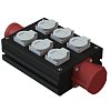 Осуществляет коммутацию от входного разъема PCE CEE32A 5-pol. IP44 до встраиваемых розеток PCE Schuko 16A по две на каждую фазу, а также сквозная коммутация до выходной розетки PCE CEE32A 5-pol. IP44.