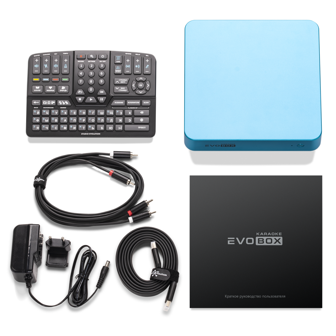 Караоке-система для дома Evolution EVOBOX всегда будет радовать вас великолепным звучанием и сверхчетким изображением в 4К. В EVOBOX собраны все функции, которые раньше можно было найти в арсенале профессиональных коммерческих караоке-систем: вокальные эффекты и обработка голоса, возможность подключения двух микрофонов, интеллектуальный поиск песен, автоматическая оценка пения и возможность записать свое выступление в студийном качестве прямо у вас дома.