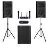 Готовый комплект для домашнего караоке на основе профессиональной системы Evolution EVOBOX с беспроводными микрофонами Evolution SE 200 D и активной акустикой MACKIE THUMP212XT в сочетании с сабвуфером THUMP115S. Оптимальное решение для помещений площадью от 45 до 100 м².