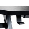 Покрытие столешницы выполнено в черном стиле с карбоновым покрытием, что не только придает современный и высокотехнологичный вид, но и защищает стол от царапин и потертостей. На задней части стола есть два закрывающихся отверстия для кабелей, позволяющих спрятать коммутацию и придать рабочему месту более аккуратный вид. Помимо этого в стол встроен эргономичный держатель для наушников.
