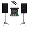 Комплект звукоусилительной аппаратуры на базе оборудования MACKIE, включающий две активные акустические системы MACKIE THUMP212 и микшерный пульт MACKIE ProFX12v3+, а также беспроводную микрофонную систему ROCKDALE PRO Stage 220 BK Vocal. В состав набора входят напольные стойки и комплект коммутационных кабелей. Подходит для стационарных установок и выездных мероприятий в барах, ресторанах, караоке-клубах, на репетиционных базах и других площадках, где важен качественный звук.
